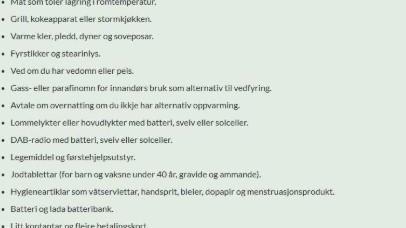 Eigenberedskap er eit personleg ansvar Har du alt du treng for å klare deg sjølv i ei veke dersom vatn og straum plutseleg blir vekke? Sjølv om me lever i eit trygt land, kan uønskte hendin...