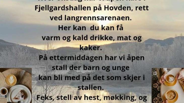 Fjellgardshallen med open kafé kvar onsdag Fjellgardshallen på Hovden, samarbeidsprosjektet mellom rideklubben og Brynje-prosjektet i Bykle kommune like ved langrennsarenaen, har open kafé kvar ...