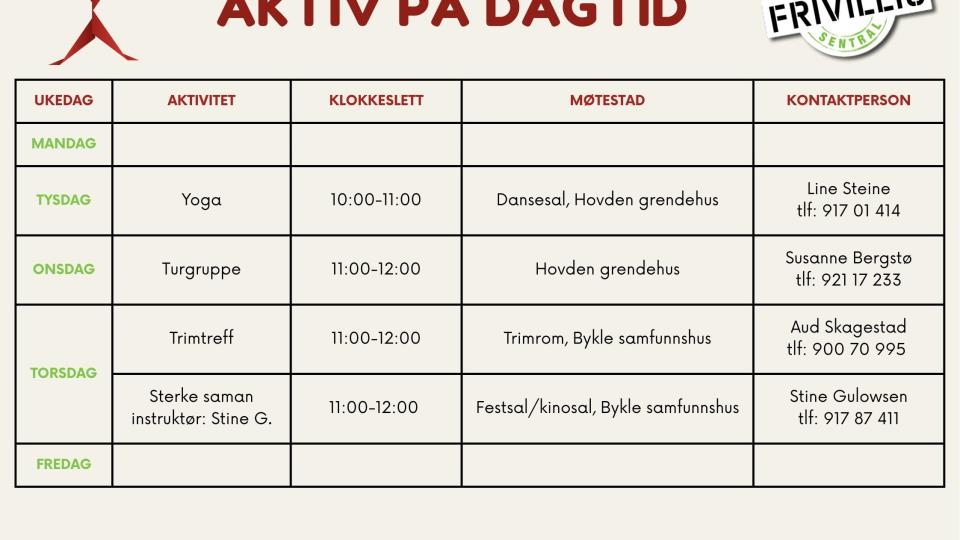 Aktiv på dagtid-oppstart i veke 3 Det blir nok av aktivitetar i Bykle og på Hovden i regi av Aktiv på dagtid også i 2026! Det er oppstart på opplegget i veke 3.