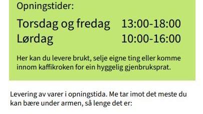 Opnar pop up gjenbruksbutikk på Hovden Det opnar ein mellombels gjenbruksbutikk på Fjellgardstun (Ved Pizzabakeren) på Hovden frå 20. november til 15. januar. Seljarar kan kome med tinga si...