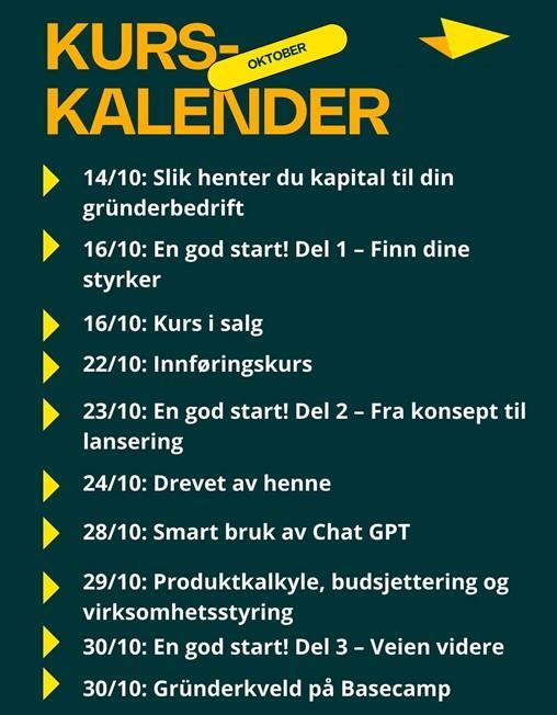 Frå 14. oktober og ut månaden er det eine kurset etter det andre som kan vere aktuelt for dei som skal etablere eller akkurat har etablert eiga verksemd.
