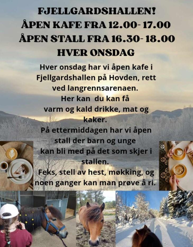 Fjellgardshallen på Hovden, samarbeidsprosjektet mellom rideklubben og Brynje-prosjektet i Bykle kommune like ved langrennsarenaen, har open kafé kvar onsdag mellom klokka 12-17. Det er også open stall mellom klokka 16.30-18.
