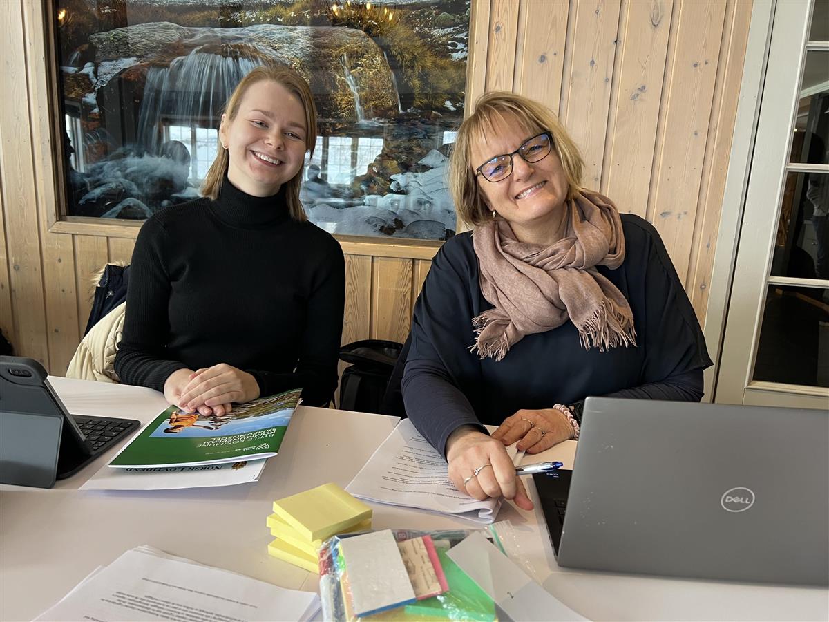 Selma-Josephine Doksæter (t.v.) saman med eitt av intervjuobjekta i masteroppgåva hennar, Anne Sæther Lislevand.