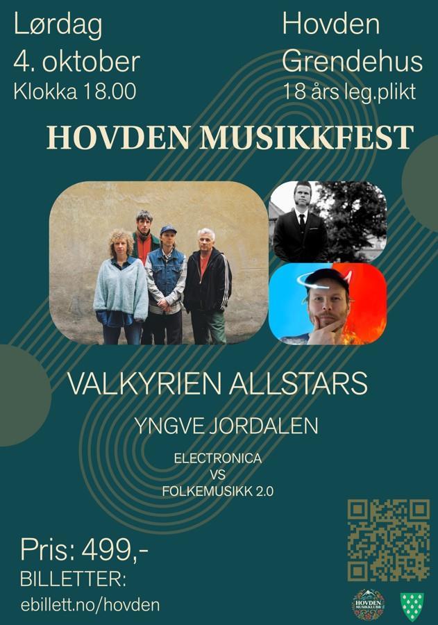 Musikkfesten får besøk av Valkyrien Allstars, Yngve Jordalen og Centeroftheuniverse (DJ). Det blir folkemusikk, electronica og rock i ei fin blanding. Dørene opnar klokka 18.00.