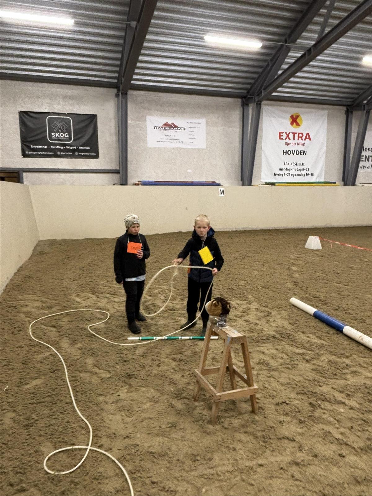 Vi besøkte det flotte arrangementet i Ridehallen på Hovden, der ungane fekk utfolde seg i hesteskokasting, lassokasting, kjepphest , og ri på ekte hest. Det var god stemning og mykje besøk i hallen denne dagen. Barna fekk premie for å fullføre dei ulike aktivitane, og etterpå sponsa vi kafeen der dei selde pølser, kaker og saft. Vi var svært mette og nøgde då vi reiste ned att til Bykle.